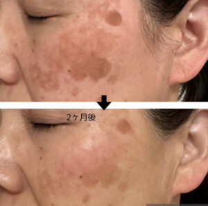最初の1ヶ月は肌バリアがまだ弱く、強い施術をすると乾燥・赤み・悪化につながることもあります。だからこそ肌質改善オーラでは、保湿力・再生力・巡りの改善 を優先し、シミが薄くなりやすい肌環境へ整えるケアを組み立てています。この準備期間で肌の基礎体力がしっかり整うことで、2ヶ月目以降の本格的なシミケアがより効果を発揮し、大きな変化へとつながっていきます。