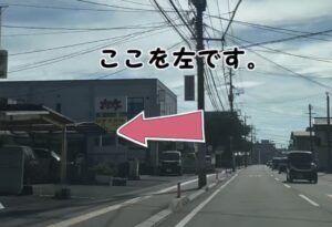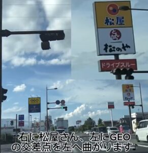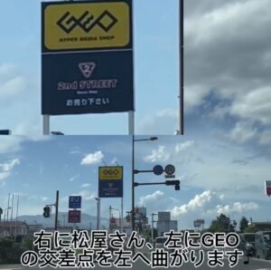 右に松屋、左にGEOある出北交差点をイオン延岡店方面に向けて左に曲がります。